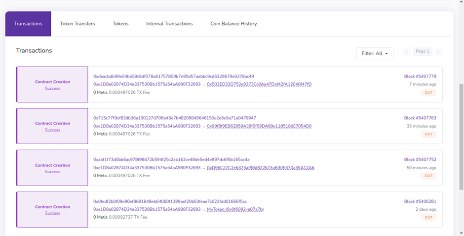 Let’s check the results on the Metis platform. Click on the “View account explorer” option to open the Metis Testnet explorer website.
