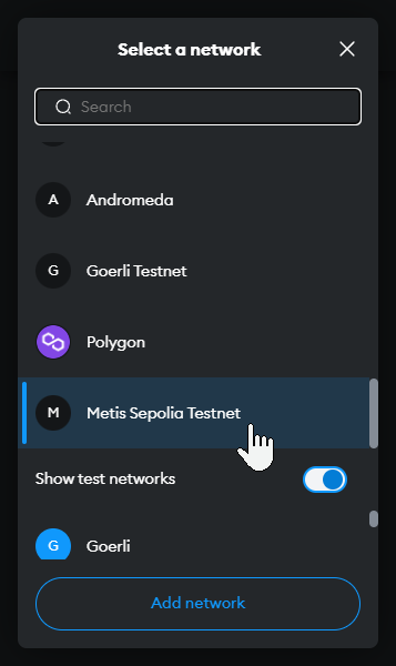 Make sure you’re on the Metis Testnet in MetaMask. Otherwise, you can simply switch to the Metis HoleskyTestnet using the MetaMask networks section.